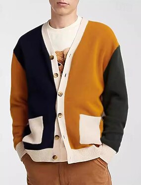 Homme Gilet Cardigan Pull court Pull en tricot A côtes Tricoter Normal Poche Couleur unie Col Châle Mode Classique Usage quotidien Rendez-vous Vêtement Tenue Automne hiver bleu marine Marron S M L