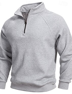Homme Sweat-shirt Sweat-shirt en polaire Pull Sweat-shirt quart de fermeture éclair Tricot côtelé Abricot Noir Vert Véronèse bleu marine Gris Clair Col montant Uni Texturé Sport & Loisir Occasionnel