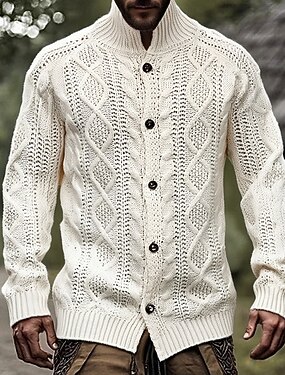 Homme Gilet Cardigan Cardigan Cardigan épais Veste Cardigan Côtelé Crochet Tricoter Hauts Réguliers Basique Couleur Unie / Unie Col montant Mode Classique Vacances Tenue quotidienne Vêtement Tenue