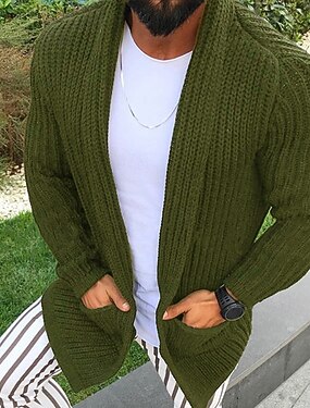 Homme Pull Gilet Cardigan Côtelé Tricoter Hauts Réguliers Tricoté Uni Col châle Vacances Mode Occasionnel Tenue quotidienne Vêtement Tenue Printemps & Automne Vert militaire M L XL