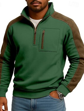 Homme Sweat-shirt Pull Sweat-shirt quart de fermeture éclair Noir Rouge Bordeaux Vert Kaki Col montant Uni Patchwork Avec Poches Bloc de Couleur Sport & Loisir Occasionnel Quotidien ancien Streetwear