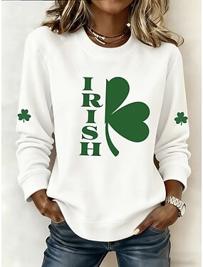Femmes Sweatshirt Pull Sweats à capuche Imprimé Graphique Trèfle Mode Occasionnel manche longue Col ras du cou Hauts Réguliers Rue Tenue Quotidienne Gris vert Noir Blanche Vert Printemps Automne Hiver
