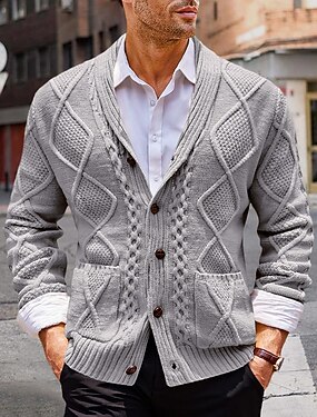 Homme Pull Gilet Cardigan Côtelé Tricoter Hauts Longs Tricoté Uni Col châle Vacances Mode Occasionnel Tenue quotidienne Vêtement Tenue Automne Hiver Kaki M L XL