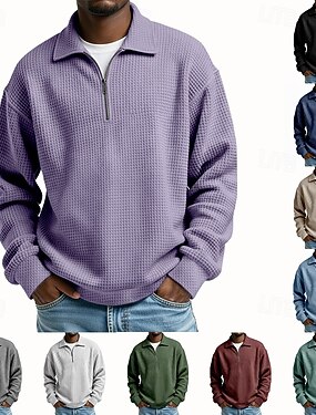 Homme Sweat-shirt Sweat-shirt gaufré Pull Sweat-shirt quart de fermeture éclair Abricot Noir Blanche Vert Claire Rouge Bordeaux Col montant Uni Poche kangourou Texturé Occasionnel Quotidien Sport