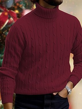 Homme Pull de Noël Chandails de Noël Col roulé Pull pull de Noël Côtelé Torsadé Tricoter Tricoté Uni Col roulé Garder au Chaud Moderne Contemporain Tenue quotidienne Sortir Vêtement Tenue Automne