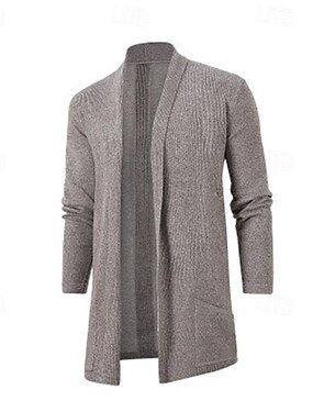 Homme Pull Gilet Cardigan Côtelé Tricoter Hauts Réguliers Tricoté Uni Col châle Vacances Mode Occasionnel Tenue quotidienne Vêtement Tenue Printemps & Automne Noir Marron M L XL