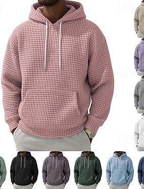 Homme Sweat à capuche Sweat à capuche gaufré Pull Noir Blanche Vert Claire Rose Claire bleu marine À capuche Uni Poche kangourou Texturé Occasionnel Quotidien Sport & Loisir Streetwear Frais