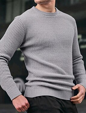 Homme Pull Pull en tricot A côtes Tricoter Normal Tricoté Plein Col Ras du Cou Mode Décontractées Usage quotidien Rendez-vous Vêtement Tenue Automne hiver Bleu Gris Claire S M L