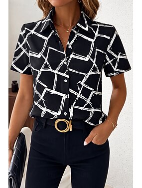 Chemise Femme Manches Courtes Graphique Rayée Abstraite Vintage Tropical Élégante Col Chemise Normale Tops Quotidien Bleu Noir Rouge Vert Été Printemps