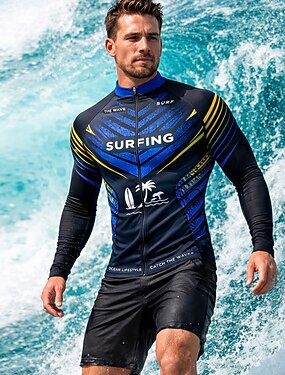 Homme Standard Maillot Anti UV Tee-shirt de Baignade Alphabet Géométrique Blocage de couleurs Zip Up UPF50+ Protection UV Séchage Rapide manche longue Maillot de Bain Tee-shirts anti-UV, tops