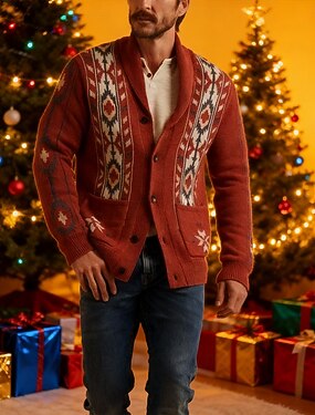 Homme Chandails de Noël pull de Noël Gilet Cardigan Pull Court Pull zippé Côtelé Tricoter Hauts Réguliers Avec Poches Boutons Argyle Col châle Mode Classique Vacances Tenue quotidienne Vêtement Tenue