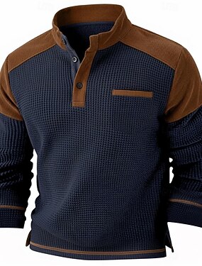 Homme Tee-shirt Gaufre T-shirt T-shirt Henley gaufré manche longue Henley Hiver Printemps & Automne Couleur Unie Traditionnel / Vintage Pur Occasionnel Maison Extérieur Noir bleu marine Vert T-shirt