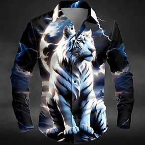 Homme Animal Tigre Éclair Chemise Chemise Boutonnée manche longue Sombre Extérieur Fête Été Printemps Col Rabattu Impression 3D chemises à col Bleu Violet Vert