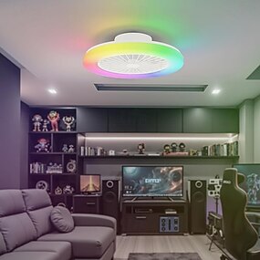 Ventilateur de plafond avec lumière et télécommande, ventilateur encastré RGB sans pales de 50 cm (20 pouces), ventilateur LED intelligent avec synchronisation musicale, 6 vitesses réglables pour le