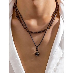 collier bohème à plusieurs rangs pour homme avec perles en bois et pendentif – collier à double brin d'inspiration tribale pour un style décontracté et de plage