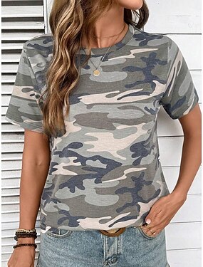 Femmes T-shirt Imprimé Graphique Camouflage Élégant Classique Occasionnel Manche Courte Col ras du cou Col rond Hauts Réguliers Occasionnel Quotidien Vert Été Printemps