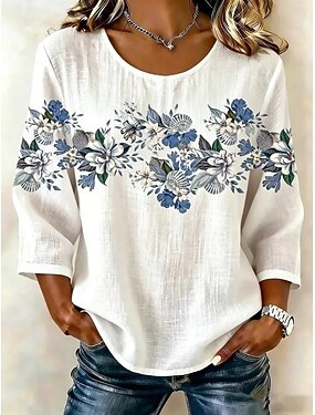 Femmes Chemisier Imprimé Fleuri Graphique Bohème Quotidien Ethnique Manche 3/4 Col ras du cou Col Bateau Hauts Longs Quotidien Fête Vêtements de vacances Orange Été Printemps