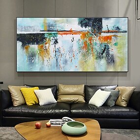 Peinture à l'huile Hang-peint Peint à la main Format Horizontal Abstrait Moderne Toile roulée (sans cadre)