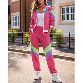 Femmes Sweat zippé Vêtements de sport des années 80 Survêtement 2 pièces Bouffant avec poche Bloc de Couleur Ensemble Vêtements Automne Vert Randonnée Métier Extérieur Léger manche longue Sport