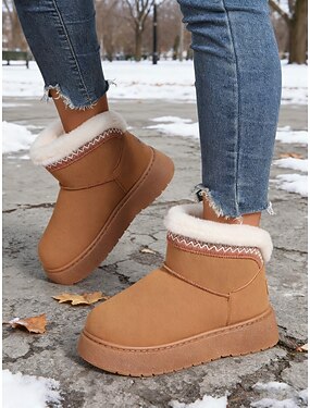 Bottines camel pour femmes doublées de fausse fourrure – chaussures d'hiver chaudes et élégantes pour les temps froids, les sorties décontractées et les moments de détente à la maison.