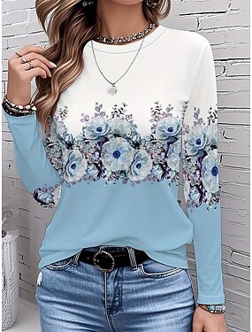 Pâques Femmes T-shirt Fleuri Graphique Plantes ancien Élégant Classique manche longue Col ras du cou Col rond Hauts Réguliers Quotidien Imprimé Bleu Printemps Automne Hiver