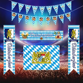 allemagne munich bleu et blanc nappe à carreaux oktoberfest bannière tirer drapeau drapeau bavière drapeau suspendu drapeau à cordes triangulaire