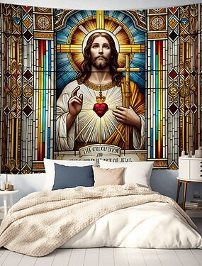 Tenture de Noël Accrochée Naissance Scène de Nativité Grand Art Mural Décor Couverture Rideau Décoration de Fête Maison Chambre Salon Décoration Festive Ornement de Fête d'Hiver