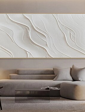 Peinture à l'huile sur toile, faite à la main, décoration murale moderne abstraite blanche à la texture simple, idéale pour le salon ou la maison. Toile roulée, sans cadre et non tendue.