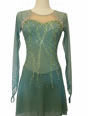 Robe de patinage artistique Femmes Patinage Robe Vert Patchwork Ourlet asymétrique Haute Élasticité Entraînement Compétition Tenue de Patinage Classique cristal pailleté manche longue Patinage sur