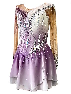 Robe de Patinage Artistique Femme Fille Patinage Robes Violet Trou de pouce Teinture Halo Haute élasticité Professionnel Compétition Tenue de Patinage Chaud Cristal / Stras manche longue Patinage sur