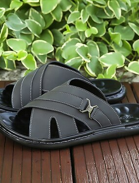 Sandales confortables pour homme en similicuir noir, bout ouvert et respirant, semelle souple et rembourrée, style estival décontracté idéal au quotidien et en voyage.