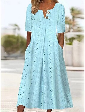 Femmes Robe Midi Robe d'été Robe à œillets Mode Moderne Plage Vacances Fête Coupe Ample Uni Demi Manches Col en V Bleu Été Printemps