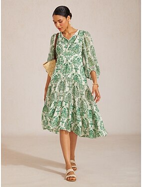 robe maxi fluide en mousseline à imprimé baroque verdoyant