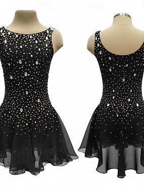 Robe de patinage artistique Femmes Patinage Robe Noir Patchwork Ourlet asymétrique Élastique Entraînement Compétition Tenue de Patinage Classique cristal pailleté Sans manches Patinage sur glace