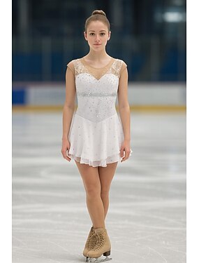 Robe de patinage artistique Femmes Fille Patinage Robe Blanche Patchwork Ourlet asymétrique Spandex Haute Élasticité Entraînement Professionnel Compétition Tenue de Patinage Classique cristal pailleté
