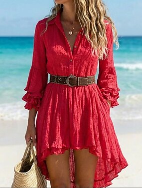 Femmes Mini Robe Robe bohème Robe occidentale Mode Classique Moderne Extérieur Fête Sortir Coupe régulière Uni manche longue Col en V Rouge Été