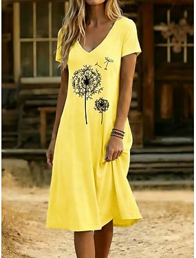 Femmes Robe Longueur Genou Robe Décontractée Robe Fleurie Robe d'été Élégant Mode Moderne Extérieur Vacances Sortir Coupe régulière Fleuri Manche Courte Col en V Bleu Blanche Jaune Grise Été Printemps
