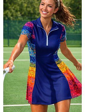 Femmes Bohème tenue de sport Robe polo de tennis Manche Courte Quart de zip Élastique Évacuation de la transpiration Respirant Volley-ball Tennis Le golf Col Rabattu Robe Bleu Vêtements de tennis