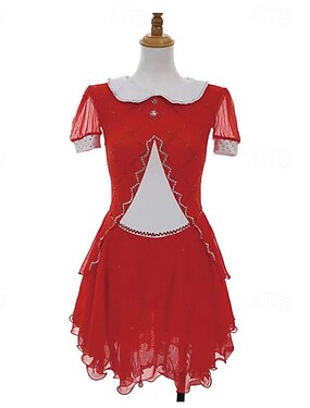 Robe de patinage artistique Femmes Fille Patinage Robe Rouge Patchwork Trou de pouce Maille Spandex Élastique Entraînement Pratique Professionnel Tenue de Patinage Chaleur Thermique cristal pailleté