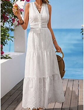 Femmes Robe maxi Robe en Dentelle Robe d'Été Robe Blanche Élégant Mode Moderne Extérieur Vacances Sortir Coupe régulière Uni Sans manches Col en V Blanche Été Printemps Automne