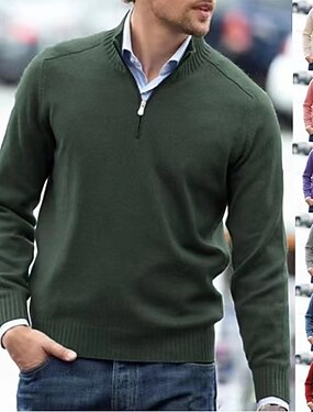 Homme Pull Pull à quart de zip Côtelé Tricoter Hauts Réguliers Tricoté Coupe ajustée Uni Col montant Tricots Contemporain Occasionnel Tenue quotidienne Vêtement Tenue Automne Noir Blanche M L XL