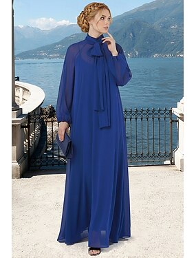 Ligne A Longueur au sol Robe d'invité de mariage Robe de Cérémonie Robe de soirée Robe de Mère de Mariée manche longue Col haut Élégant Simple Formel Chiffon avec Plis