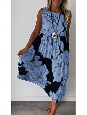 Femmes Robe maxi Faux coton lin Robe fourreau Robe d'Été Robe Décontractée Vacances Mode Moderne Quotidien Week-end Coupe régulière Fleuri Sans manches Col ras du cou Bleu Jaune Violet Orange Ét