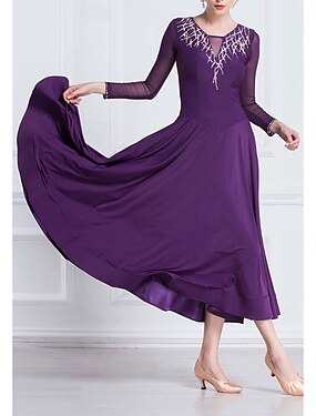 Danse de Salon Robe Strass Plis Épissage Femmes Soirée Entraînement Performance manche longue Haut Spandex Polyester