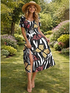 Femmes Robe maxi Robe d'Été Robe trapèze Robe Nuisette Vacances Occasionnel Boho Plage Coupe Ample Graphique Animal Papillon Sans manches Col en V Blanche Été Printemps