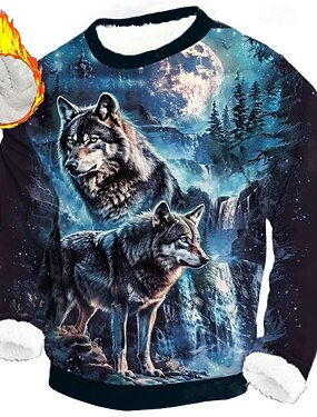 Homme Loup Polaire Sweatshirt Quotidien Occasionnel 3D Col ras du cou Maison Soirée Cadeau Vêtements de rue Bleu Noir Bleu de minuit Impression 3D Automne Hiver Designer S M L XL XXL XXXL