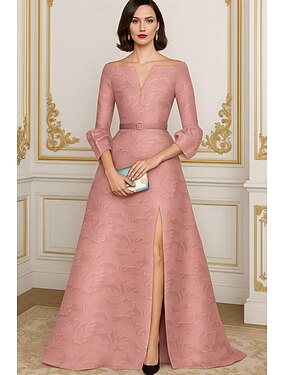 Ligne A Longueur au sol Robe d'invité de mariage Robe de Cérémonie Robe Évasée Robe de Mère de Mariée Manche 3/4 Col en V Élégant ancien Pastel Formel Chiffon Jacquard avec Fleurs 3D Volants