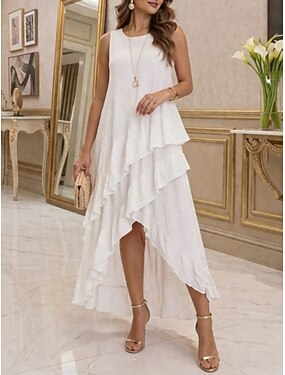 Femmes Robe Midi Robe d'Été Robe Blanche Robe trapèze Robe d'été Vacances Occasionnel Boho Quotidien Fête Robe d'Été Coupe régulière Uni Sans manches Col ras du cou Noir Blanche Rouge Vert Véronèse