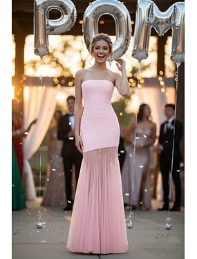 Ligne A Longueur au sol Robe de Soirée Tenue de soirée Élégant Bloc de Couleur Soyeux Sans manches Épaules Dénudées Mariage Formel Poche Satin avec Plis Poche Fleur d'Épaule