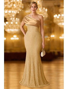 Sirène Trompette Fourreau Colonne Traîne Balayage Robes de Bal Robe de Soirée Tenue de soirée Élégant Scintillant Style Célébrité Sans manches Une Épaule Fête de jardin Mariage Satin Pailleté avec